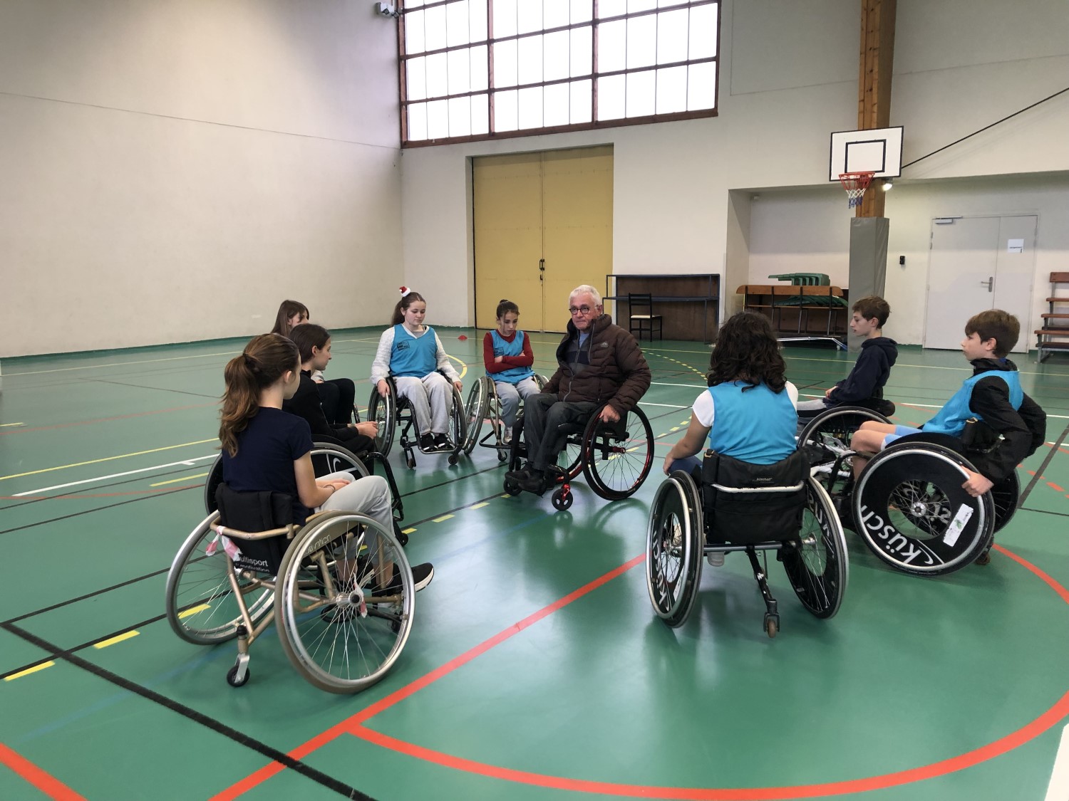 Vendredi 19 décembre Mr Pirotte (président du Comité Départemental Handisport) et Mr Mirande (trésorier du Comité) sont intervenus au gymnase pour présenter les différentes formes de handicap, les clubs et les actions locales. Ils ont soulignés que notre département était celui qui avait le plus de licenciés dans la région aquitaine (avec la Gironde).