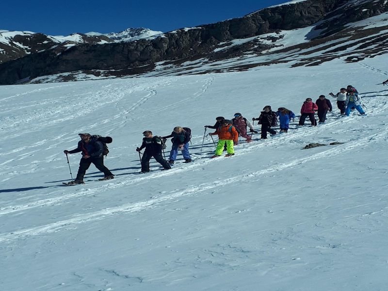 Dans le cadre de l'UNSS, les élèves du collège et leurs professeurs ont eu la joie de se rendre au Parc National des Pyrénées au col du Portalet, ils ont pu ainsi profiter d'une magnifique balade en raquettes avec le soleil en cadeau.